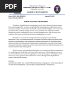 teams of managers and RNs. A nursing leader on his part has the role of influencing changes in