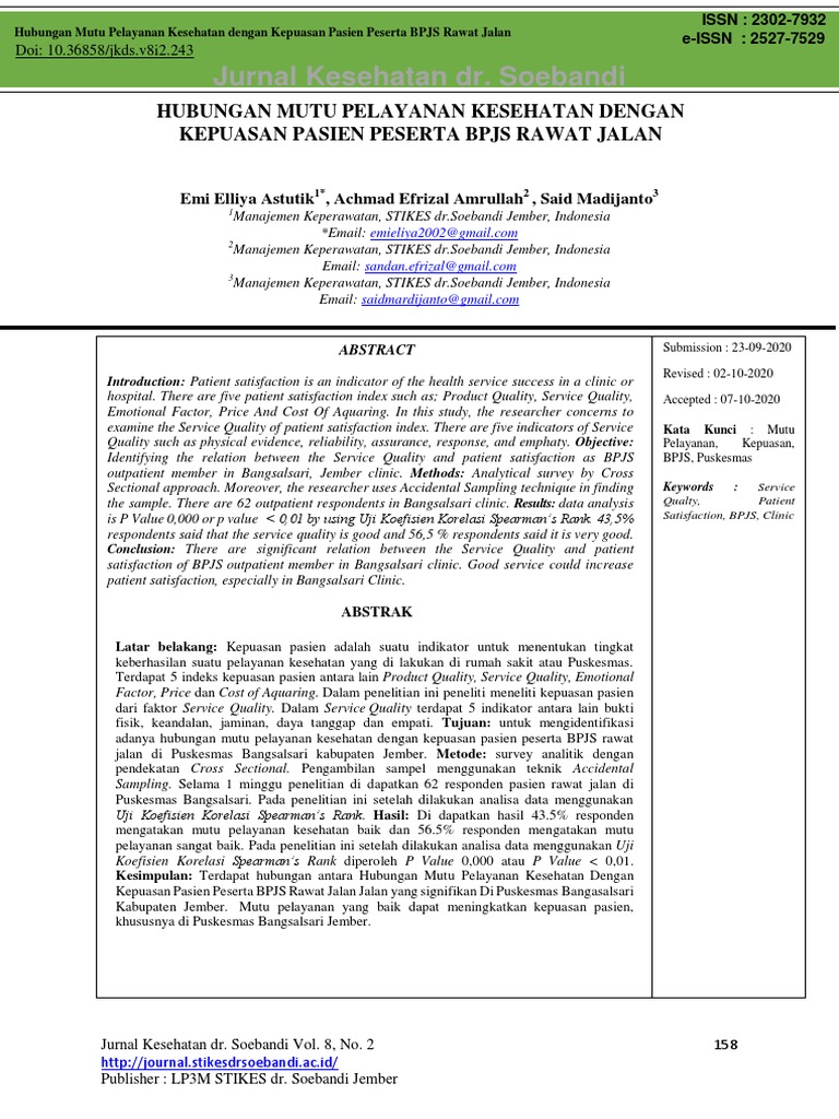 Nasional. dengan kepuasan pasien rawat jalan