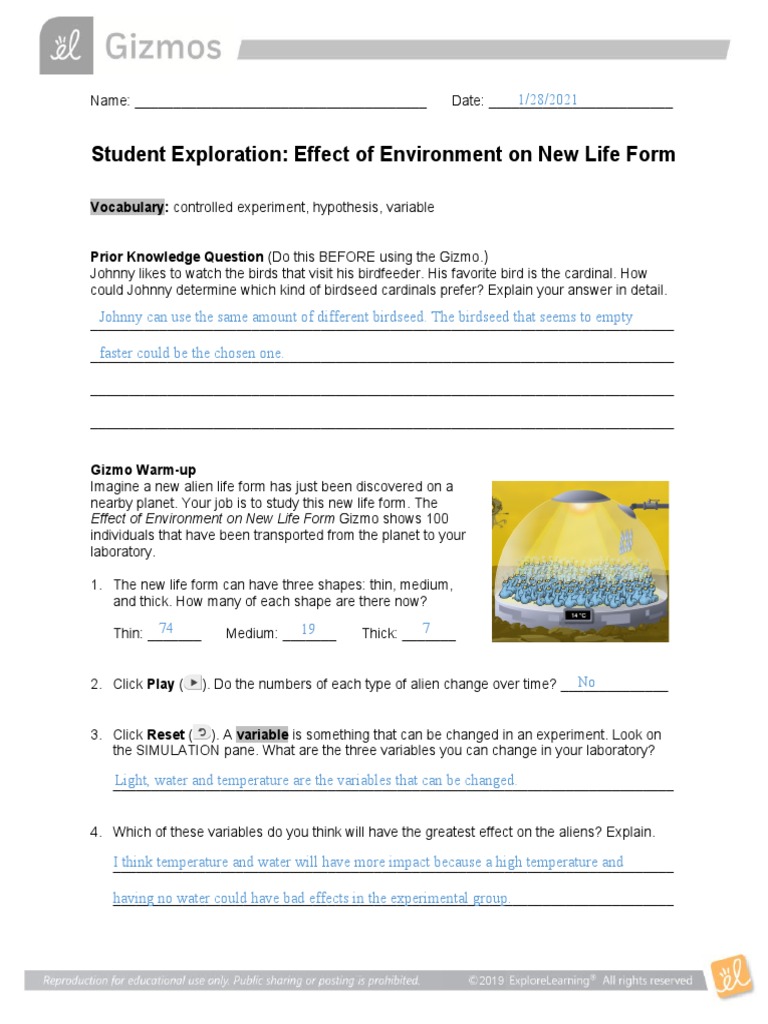 Student Exploration: Effect of Environment on New Life Form