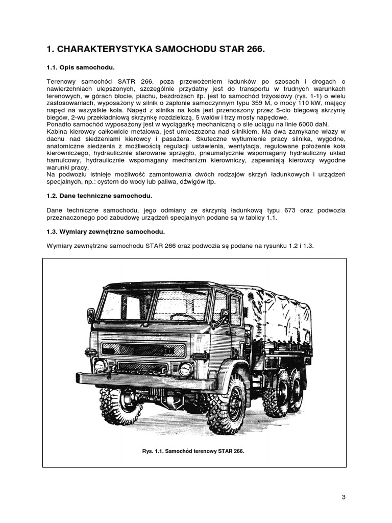 Wymiary zewnętrzne samochodu STAR 266 oraz podwozia są podane na rysunku 1.2 i 1.3.