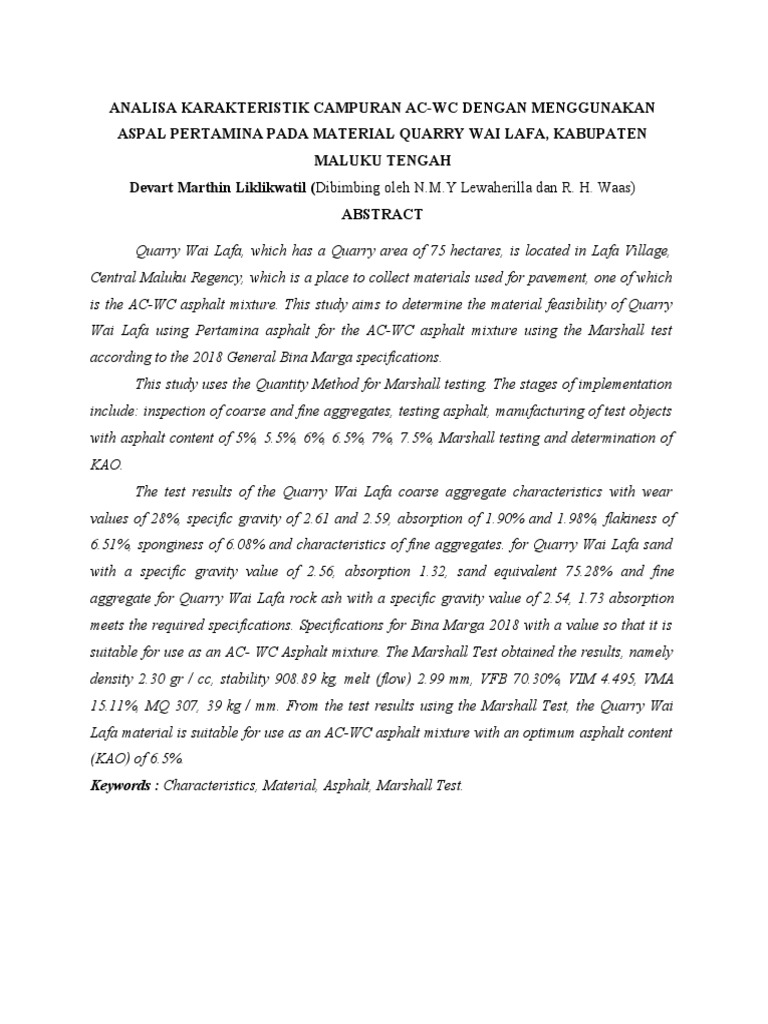 ASPAL PERTAMINA PADA MATERIAL QUARRY WAI LAFA, KABUPATEN