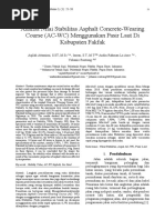 is the AC-WC asphalt mixture. This study aims to determine the material feasibility of Quarry