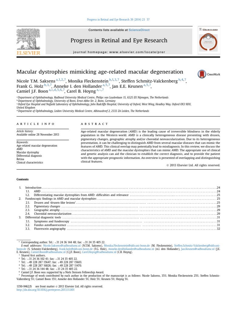 Zack, D.J., Duvvari, M.R., Bakker, B., Paun, C.C., Boon, C.J., Uitterlinden, A.G., with inherited macular disease. Invest. Ophthalmol. Vis. Sci. 50, 3553e3561.