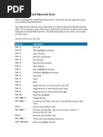 Short-cut Keys and their Descriptions