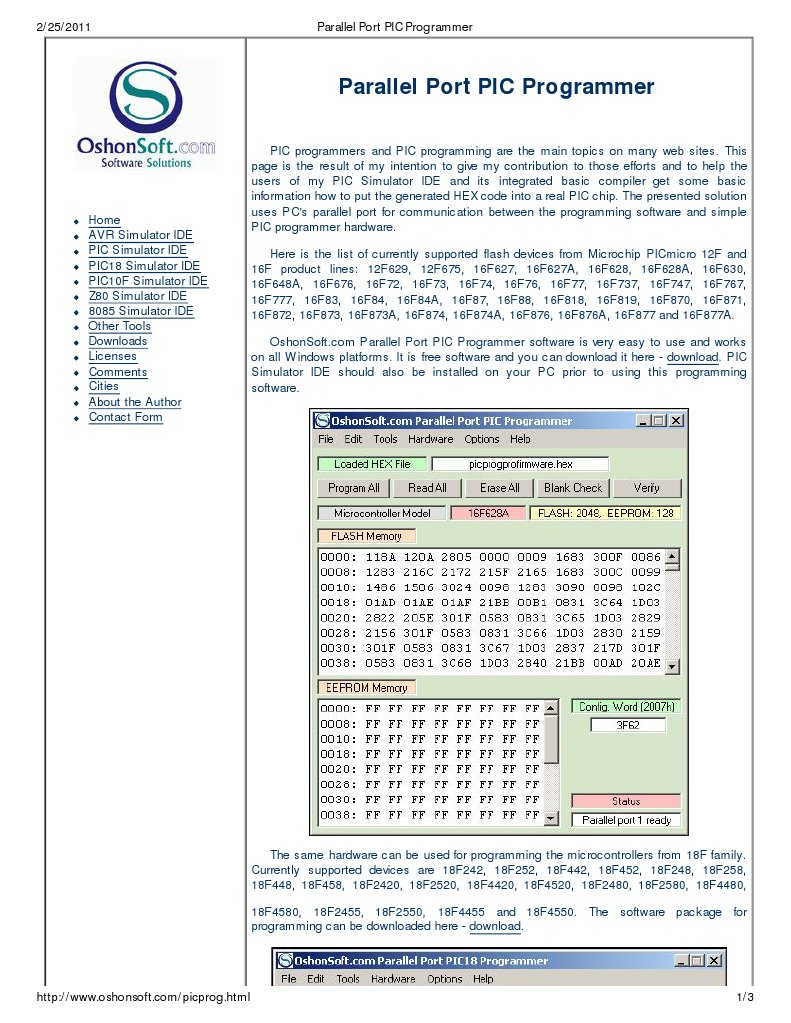 Downloads OshonSoft.com Parallel Port PIC Programmer software is very easy to use and works