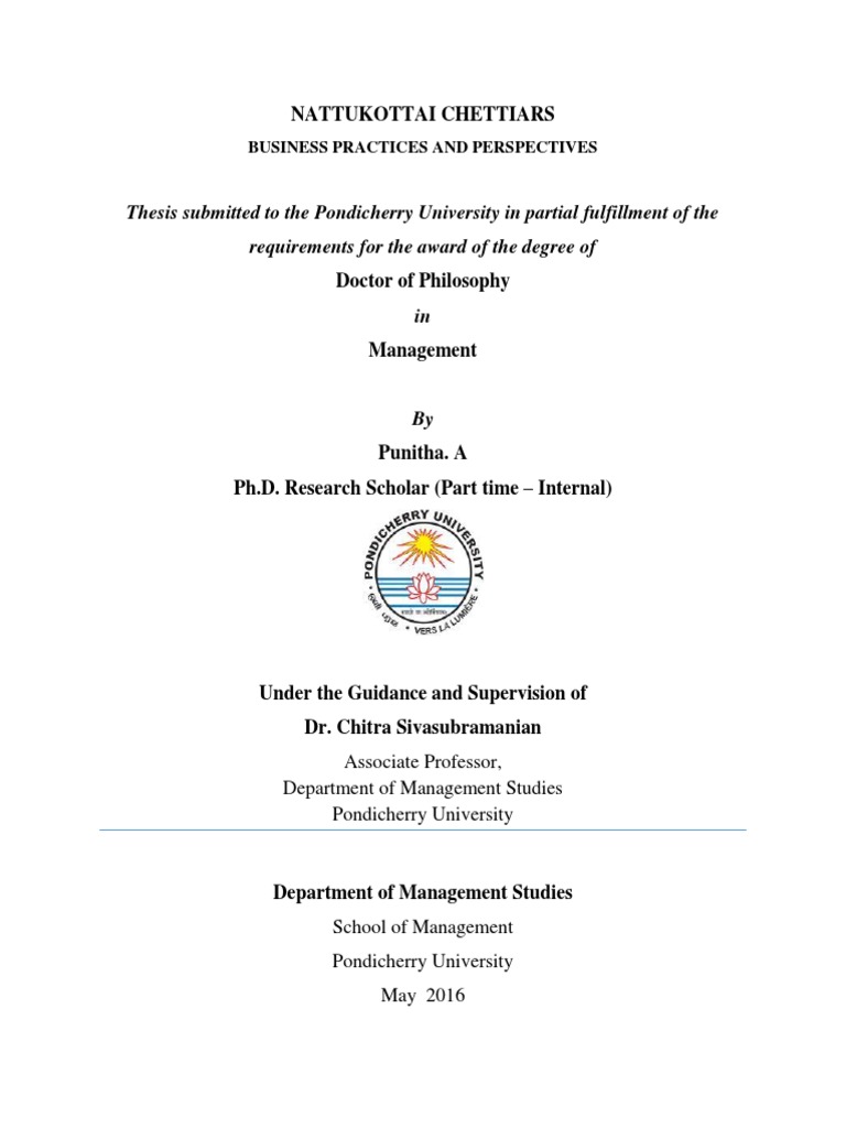 Chettiars – Business Practices and Perspectives”, submittedtowards the degree of