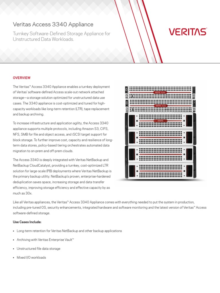 The Veritas™ Access 3340 Appliance enables a turnkey deployment