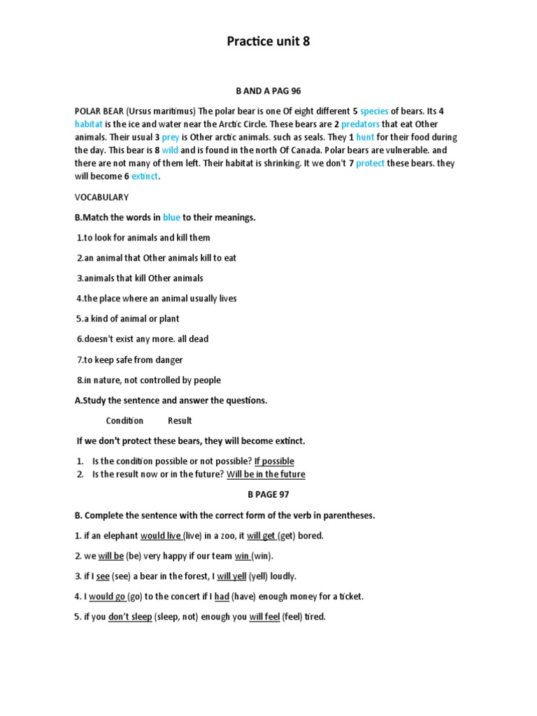 1. if an elephant would live (live) in a zoo, it will get (get) bored.