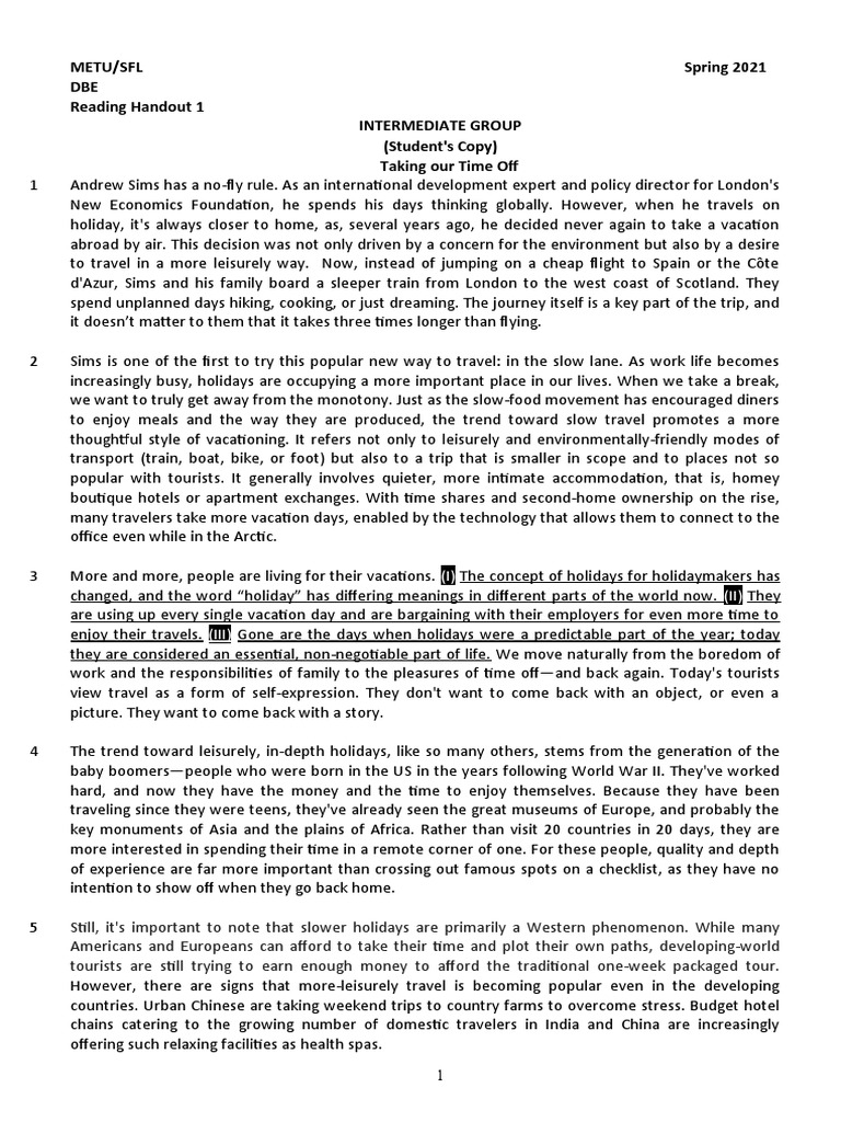 3 More and more, people are living for their vacations. (I) The concept of holidays for holidaymakers has