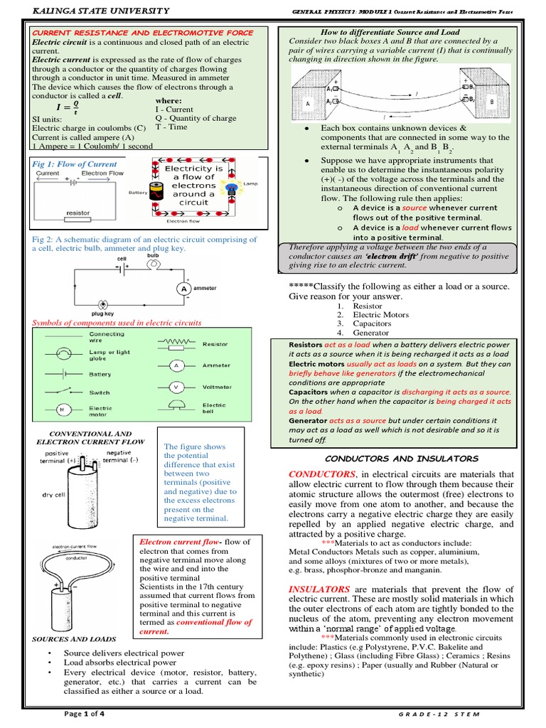 KALINGA STATE UNIVERSITY GENERAL PHYSICS 2: MODULE 1 Current Resistance and Electromotive Force