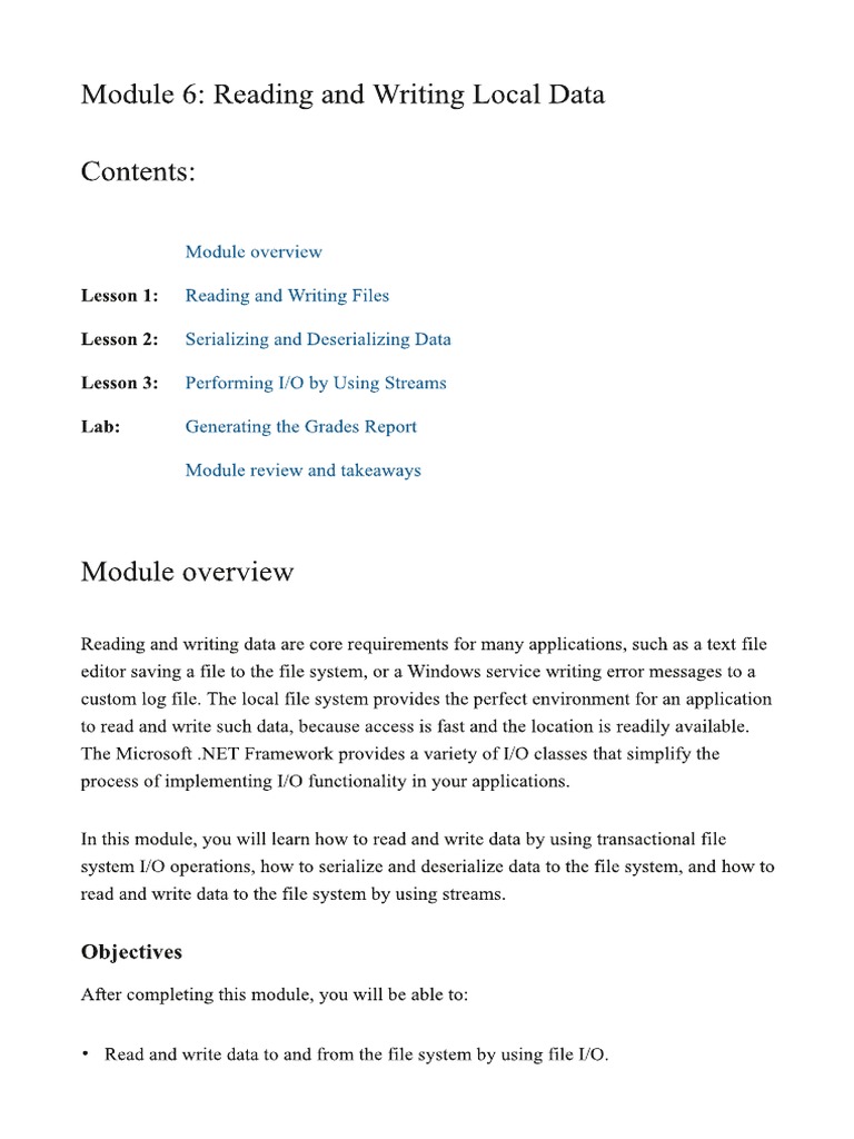 In this lesson, you will learn how to use the classes in this namespace to read and write