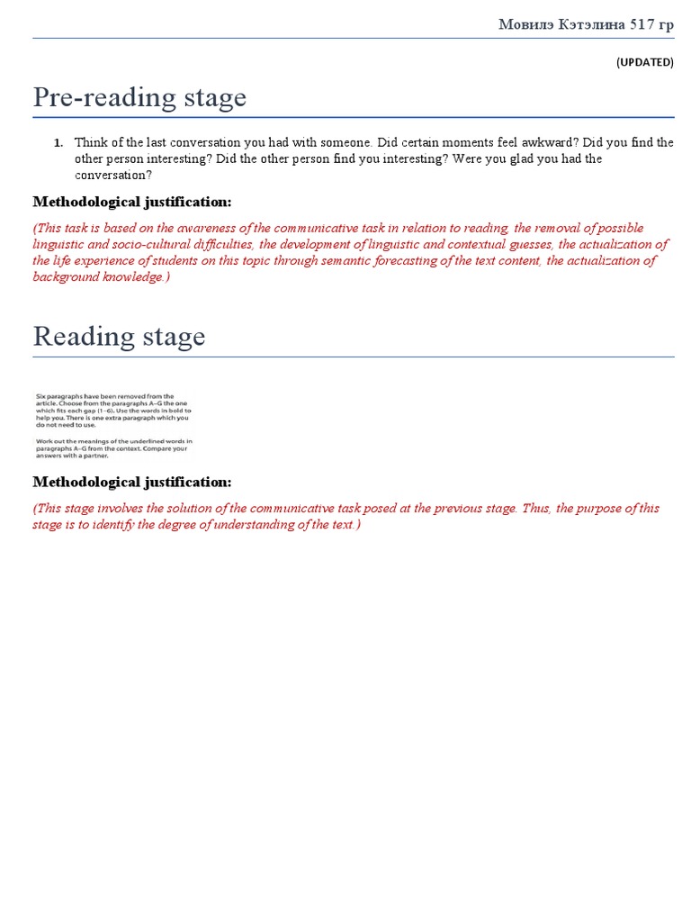 (This task is based on the awareness of the communicative task in relation to reading, the removal of possible