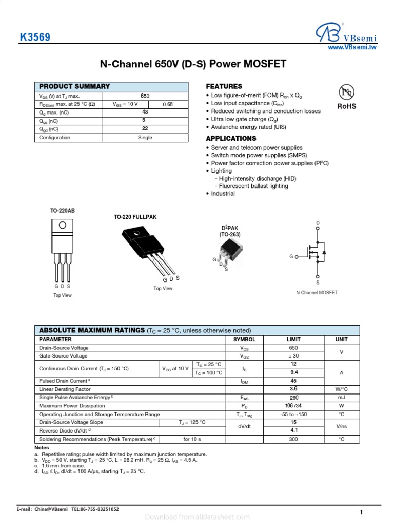 N-Channel 650V (D-S) Power MOSFET: Features Product Summary