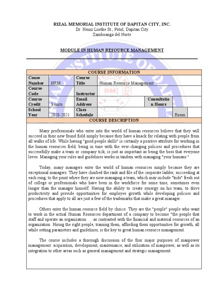 MODULE IN HUMAN RESOURCE MANAGEMENT