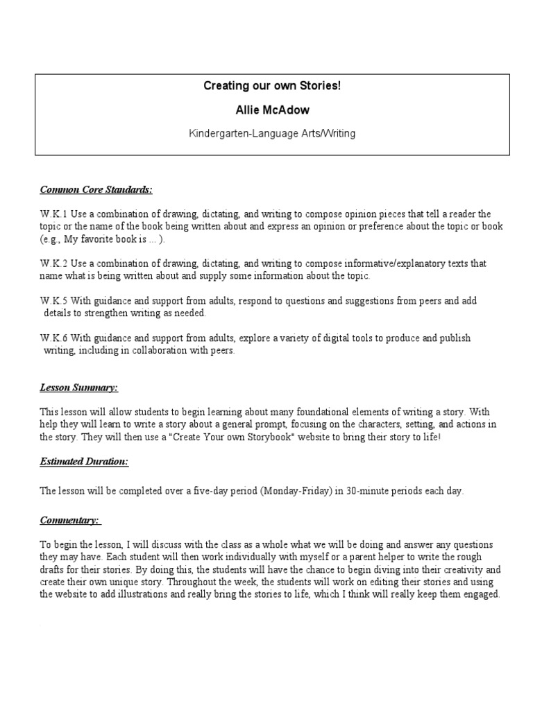 This lesson will allow students to begin learning about many foundational elements of writing a story. With