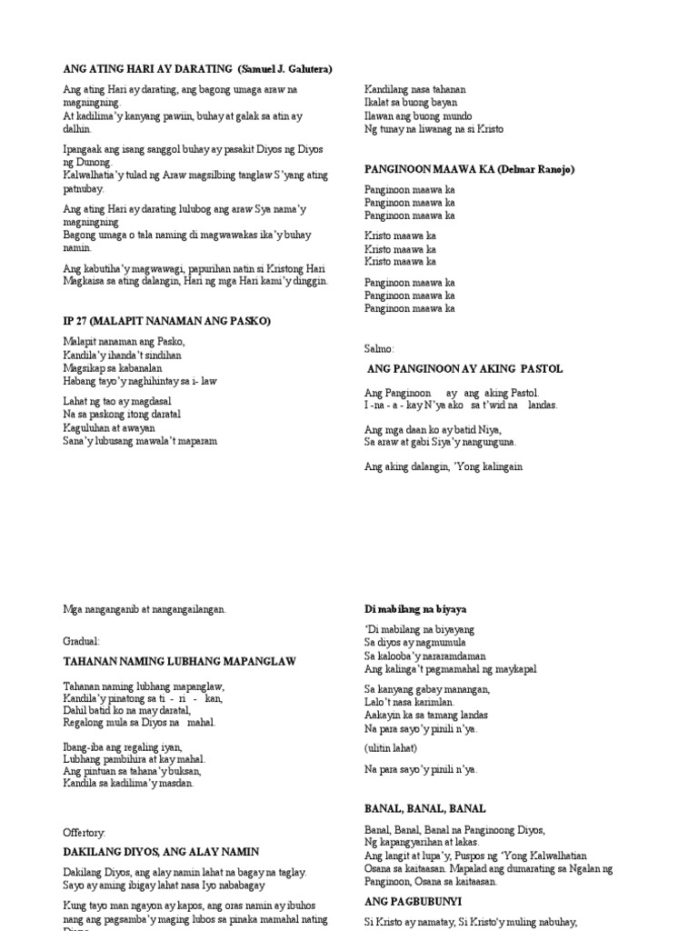 Sundin ang loob Mo, dito sa lu - pa tulad ng sa langit Kay laking paglingap pagpapakasakit