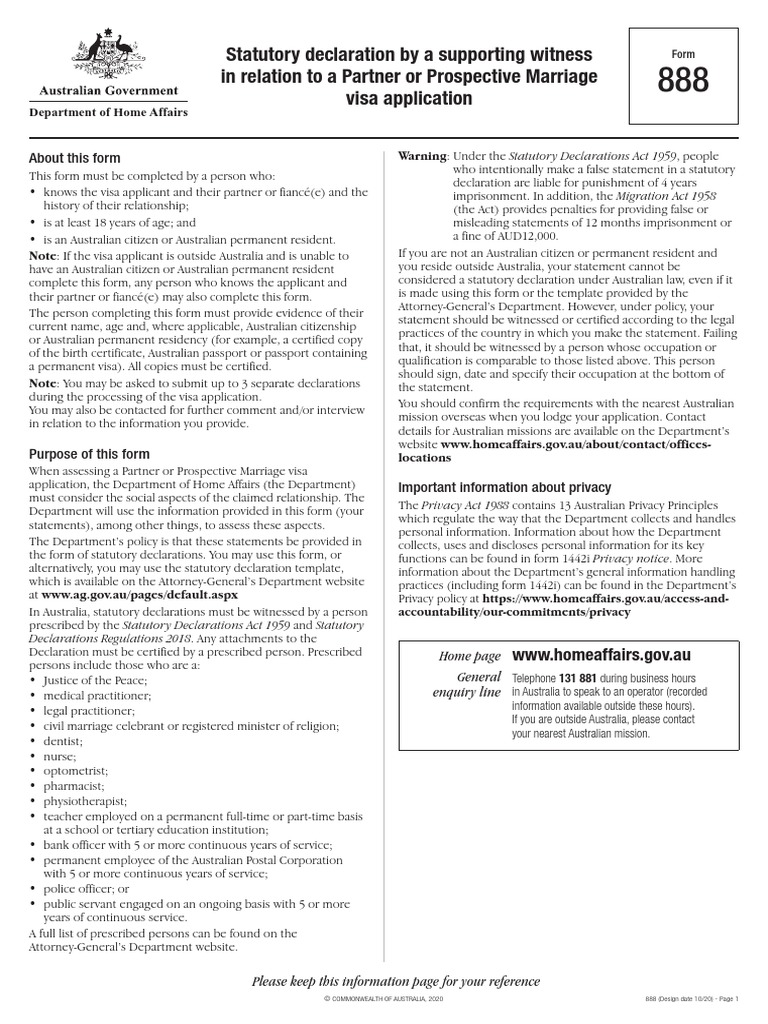 © COMMONWEALTH OF AUSTRALIA, 2020 888 (Design date 10/20) - Page 1