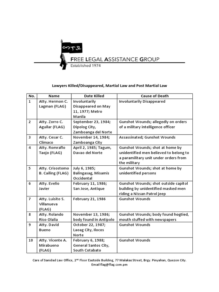 Lawyers Killed/Disappeared, Martial Law and Post Martial Law