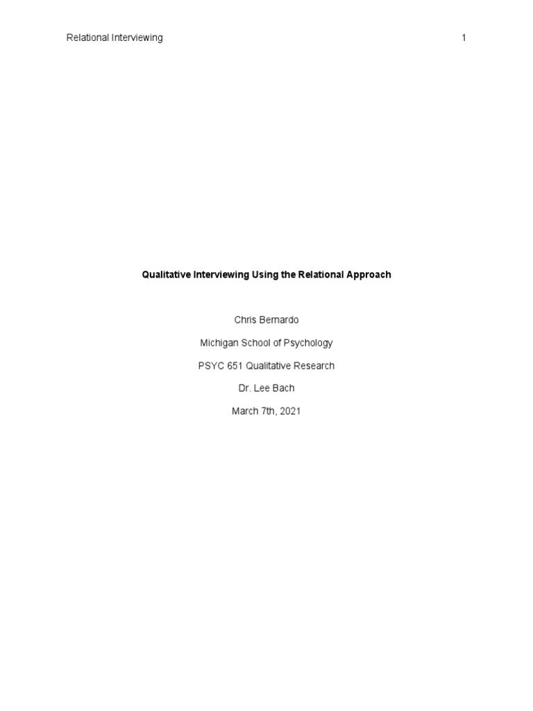 Qualitative Interviewing Using the Relational Approach