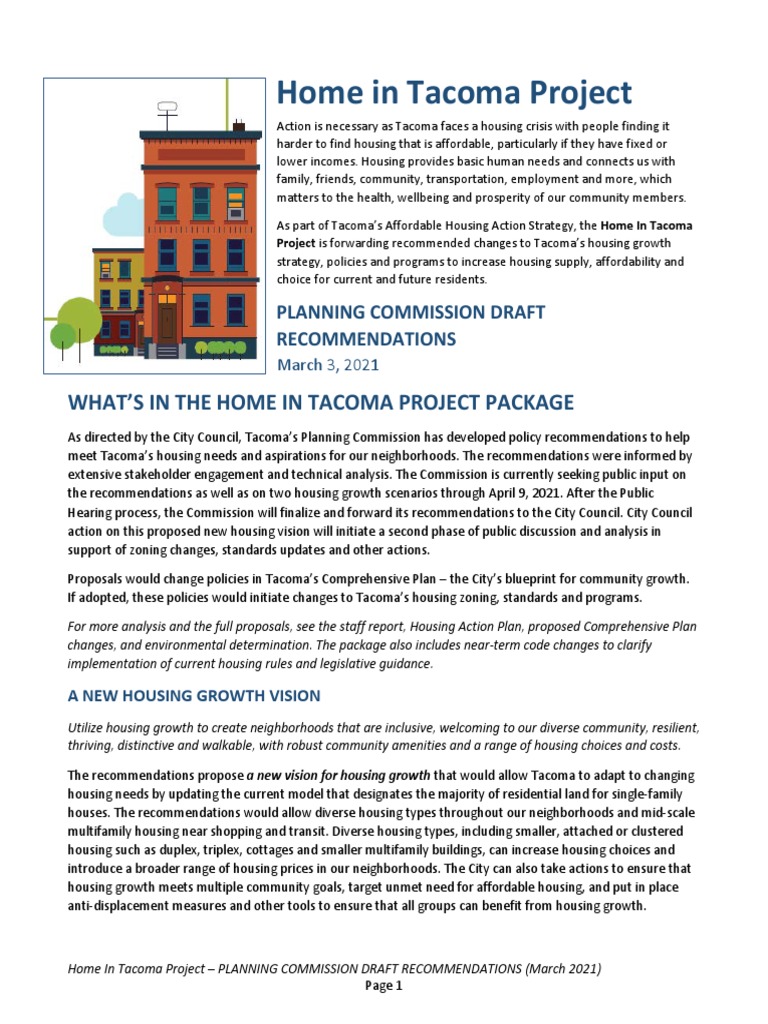 Home In Tacoma Project – PLANNING COMMISSION DRAFT RECOMMENDATIONS (March 2021)
