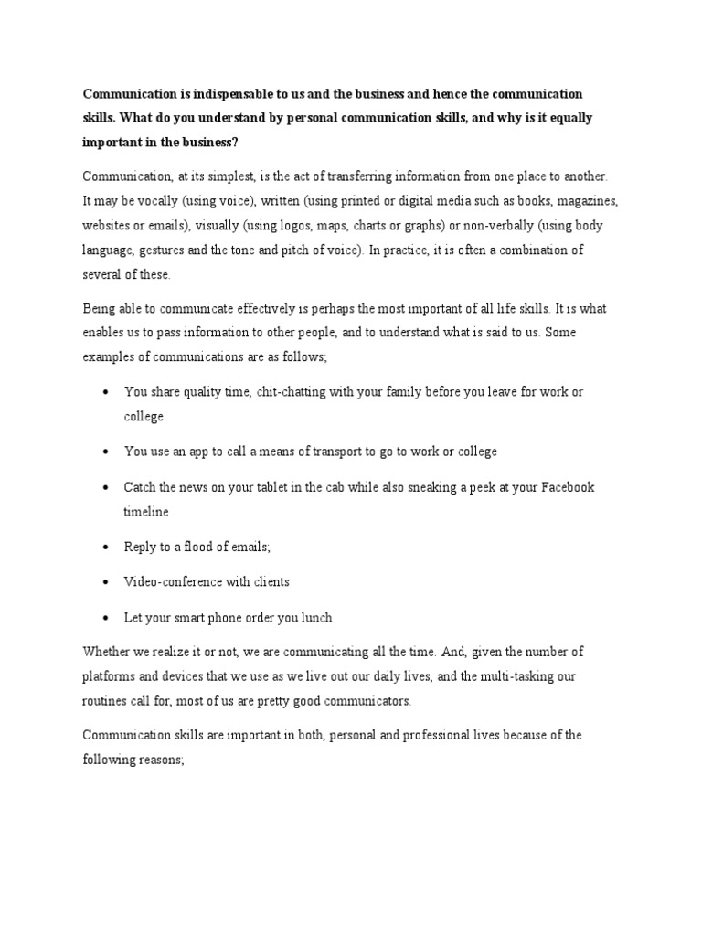 progresses, the importance of communication skills increases; the ability to speak, listen,
