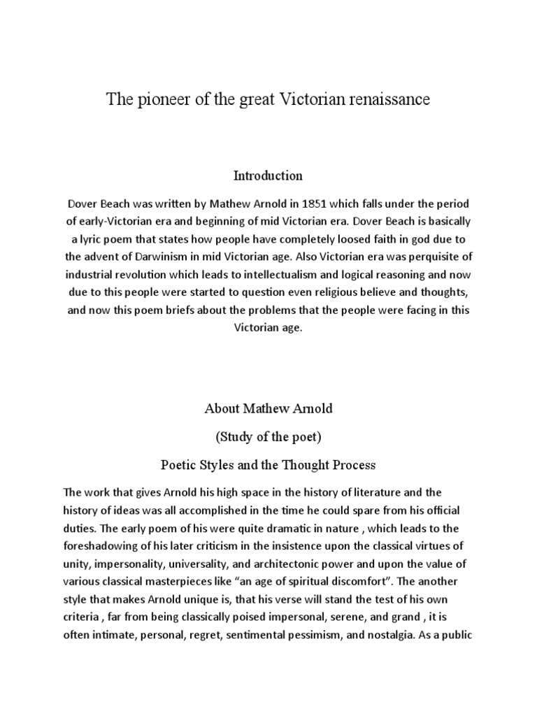of early-Victorian era and beginning of mid Victorian era. Dover Beach is basically
