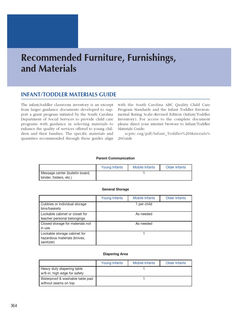 The infant/toddler classroom inventory is an excerpt with the South Carolina ABC Quality Child Care