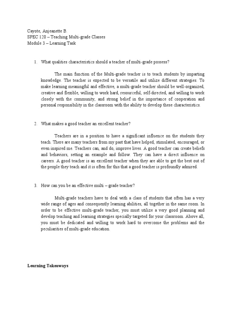 1. What qualities characteristics should a teacher of multi-grade possess?