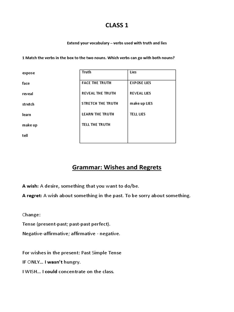 Extend your vocabulary – verbs used with truth and lies