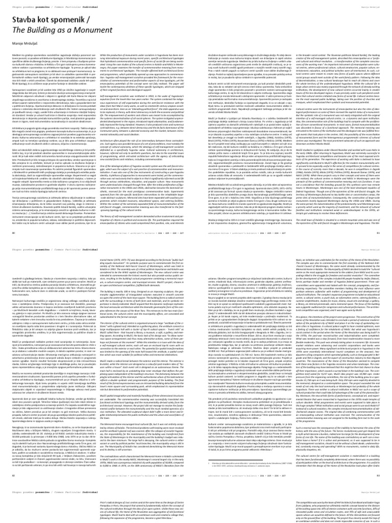 tovne javnosti, so posebne arhitekturne tipologije, ki hibridizirajo komemoracijo in iving international exposure during recent years, specific architectural typologies tralizacije je morala nova kulturna krajina doseči vse državljane in zajeti celotno creator of the self-management system, described this emancipation as a “profo-
