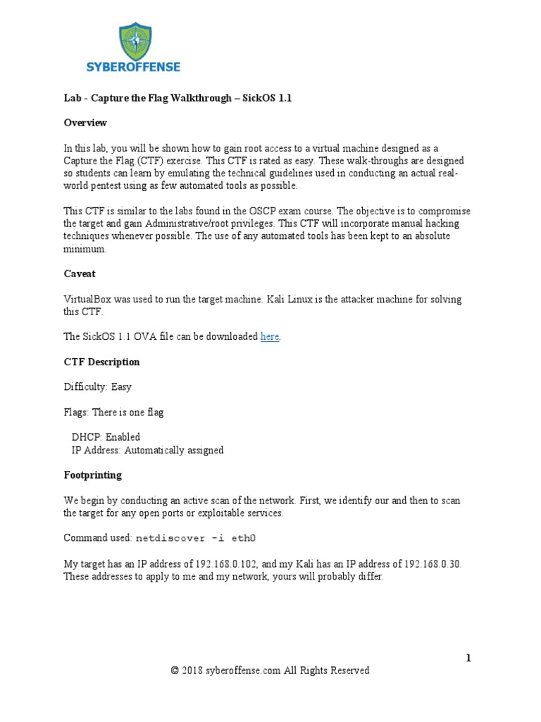Lab - Capture the Flag Walkthrough – SickOS 1.