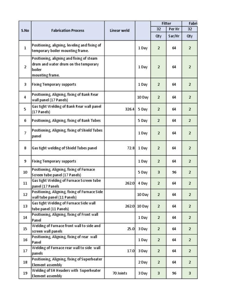 S.No Fabrication Process Linear weld 32 Per Hr 32