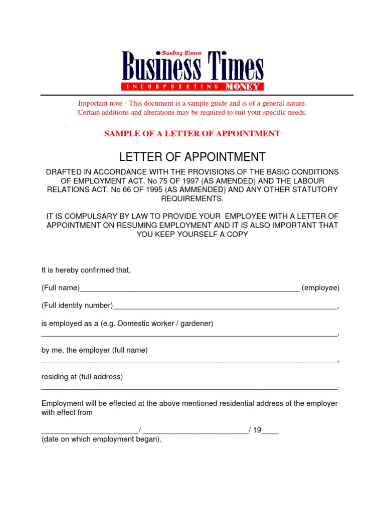 No alterations to this letter of appointment will be of affect unless done so in writing and
