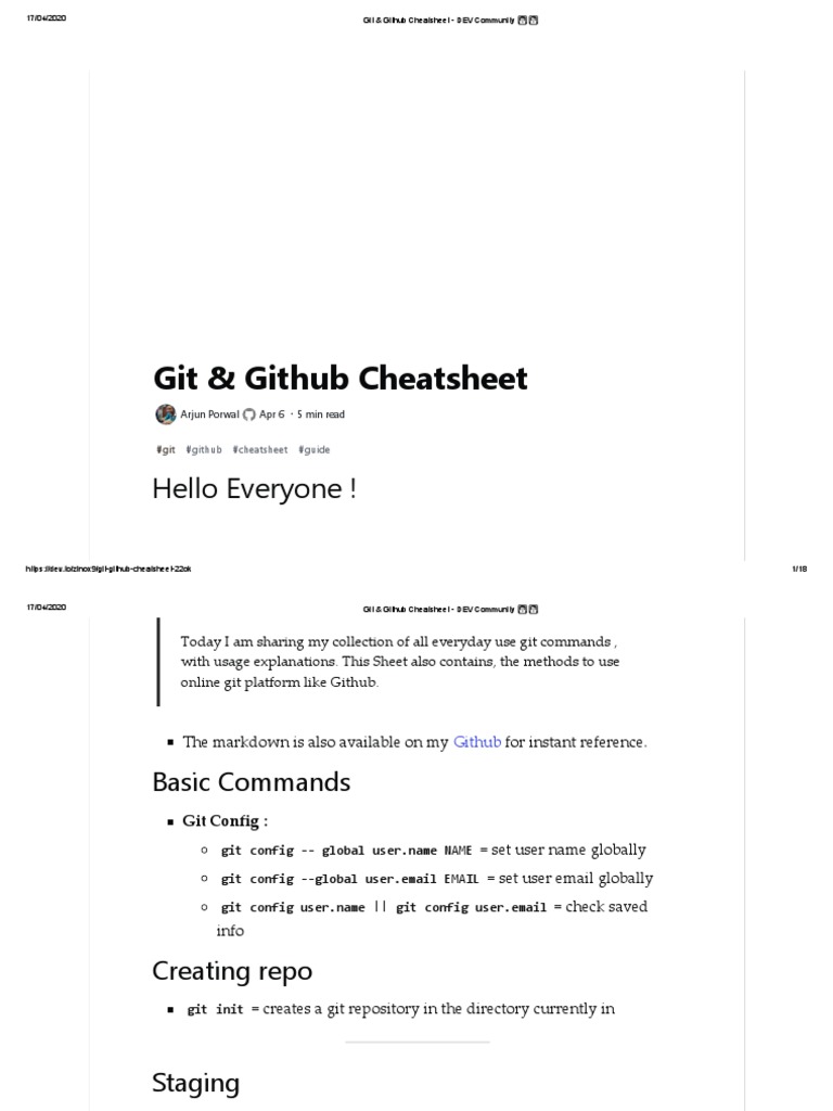 17/04/2020 Git & Github Cheatsheet - DEV Community