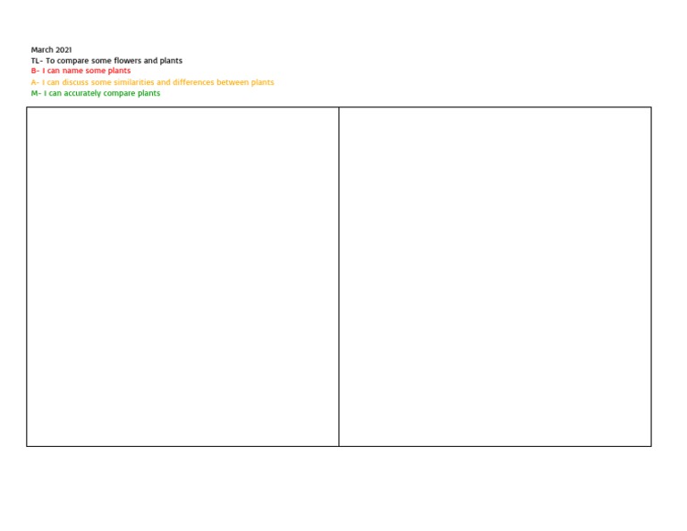 March 2021 TL- To compare some flowers and plants B- I can name some plants A- I can discuss some similarities and differences between plants M- I can accurately compare plants