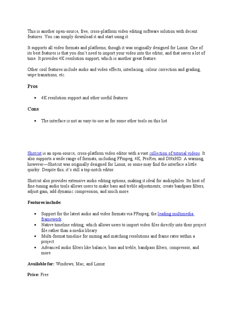 It supports all video formats and platforms, though it was originally designed for Linux. One of