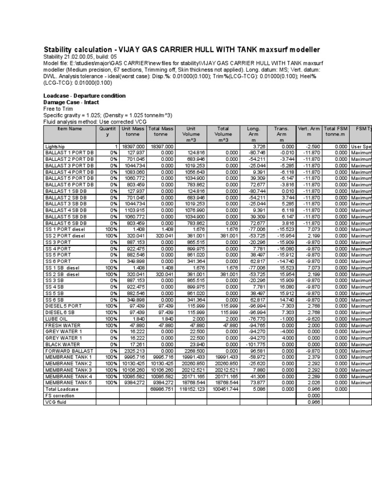 Stability calculation - VIJAY GAS CARRIER HULL WITH TANK maxsurf modeller