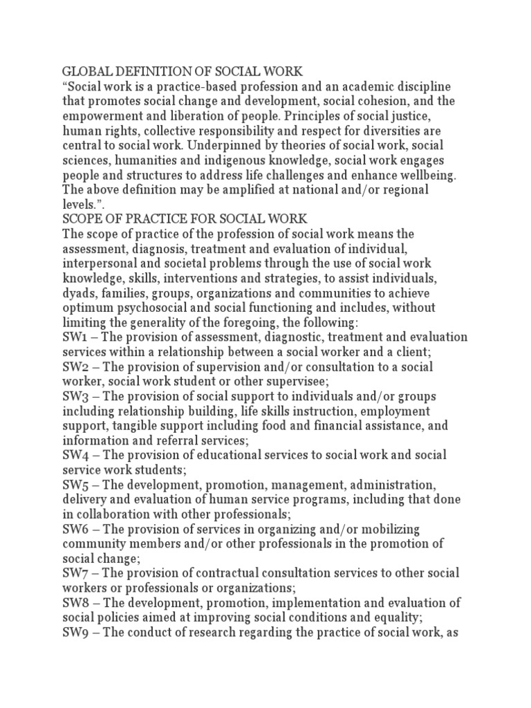 SCOPE OF PRACTICE FOR SOCIAL WORK
