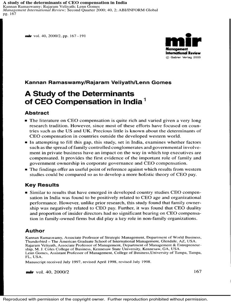 A study of the determinants of CEO compensation in India