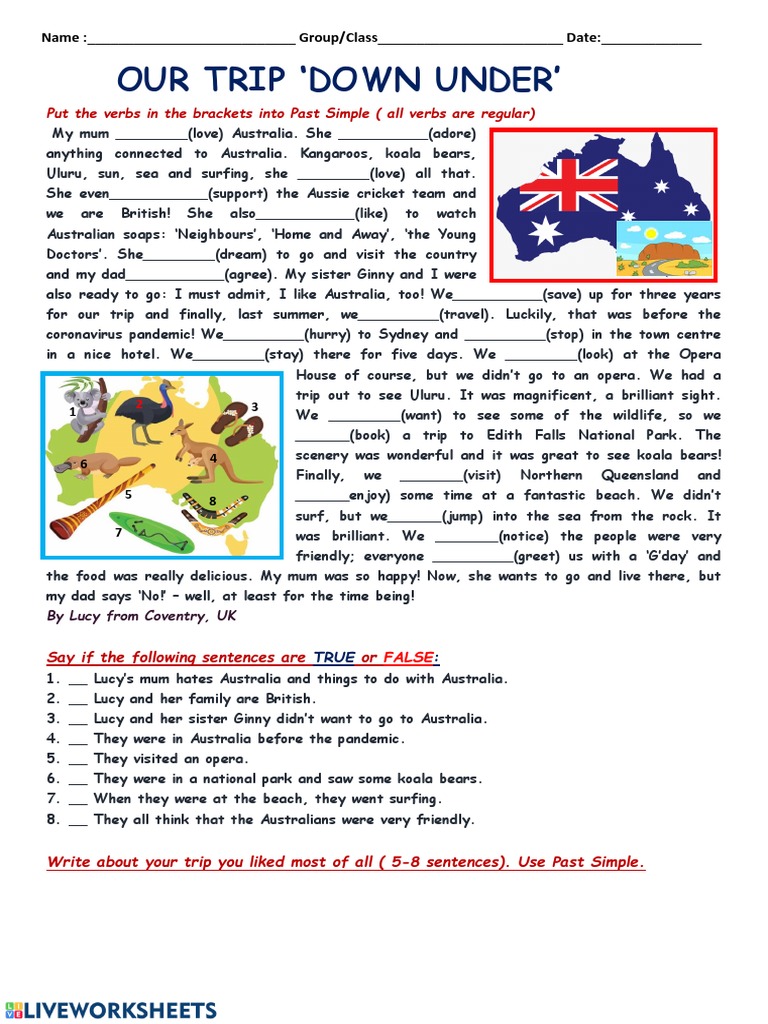 Write about your trip you liked most of all ( 5-8 sentences). Use Past Simple.