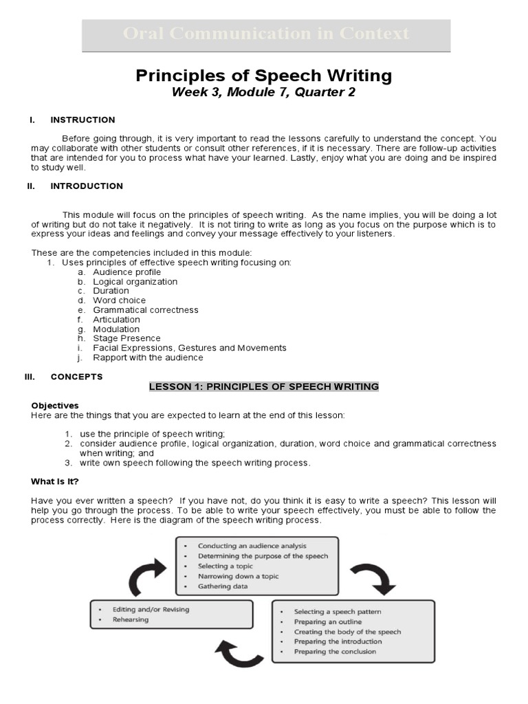 LESSON 1: PRINCIPLES OF SPEECH WRITING