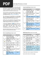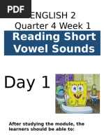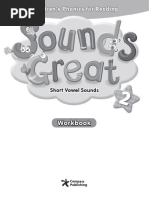 The document provides a table with examples of short vowel sounds for the letters a, e, i, and o. It includes words that demonstrate these vowel sounds and the corresponding page numbers from the source text. The table includes examples such as ham, ram, dam, jam for the short a sound and bed, red, leg, egg for the short e sound.