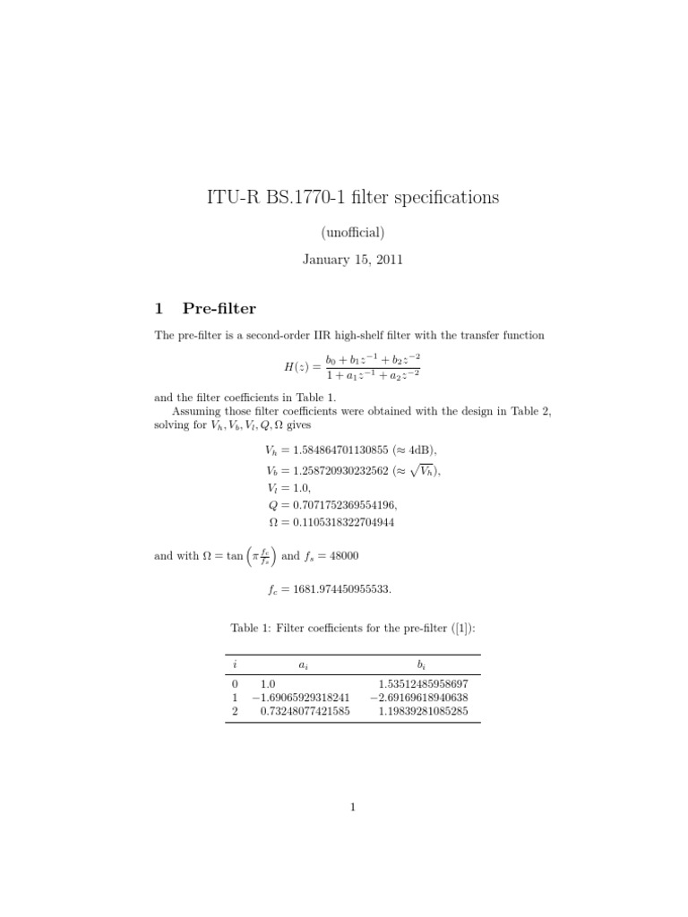 Table 1: Filter coefficients for the pre-filter ([1]):