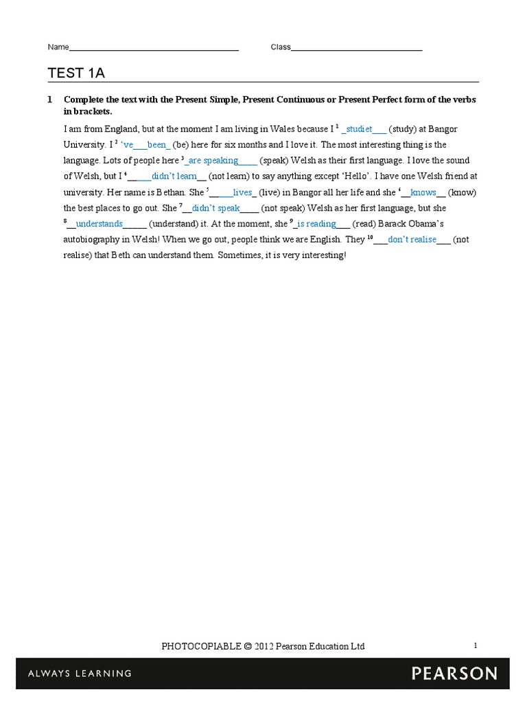university. Her name is Bethan. She 5_____lives_ (live) in Bangor all her life and she 6__knows__ (know)