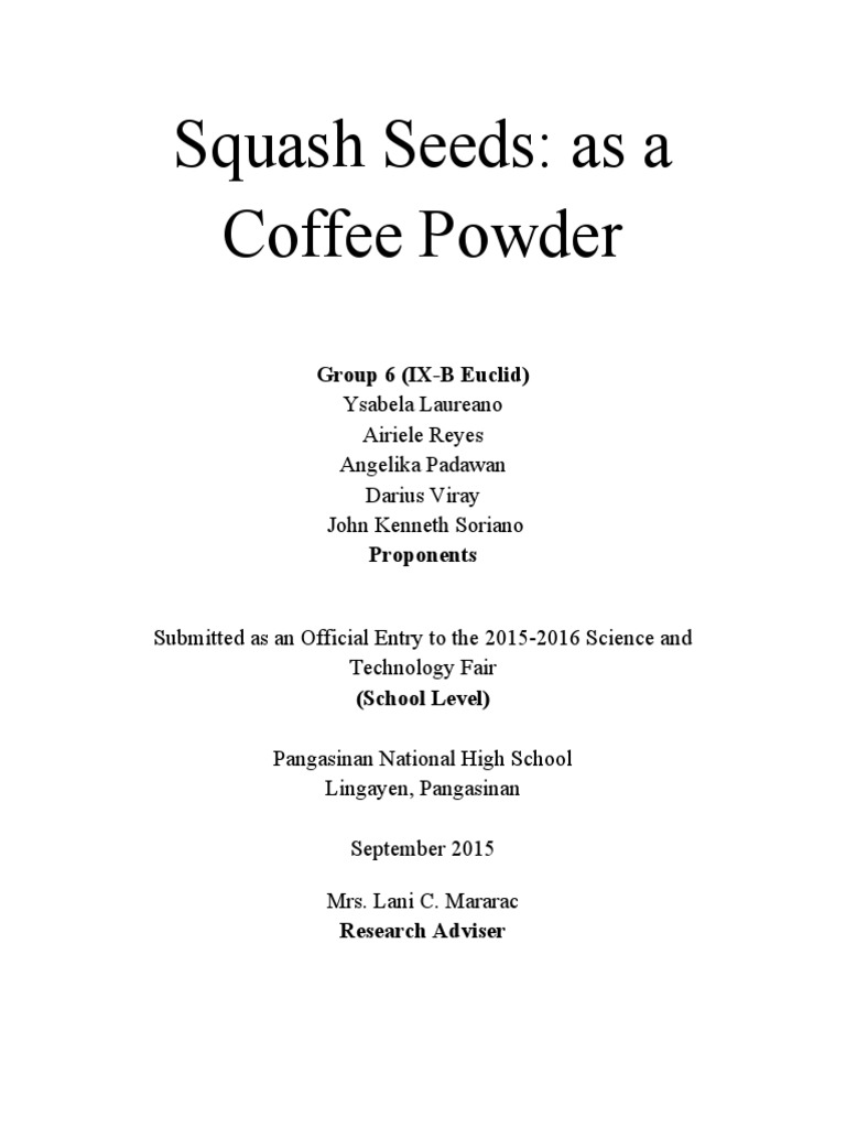 This study aims to determine the feasibility of Squash Seeds as a Coffee Powder.