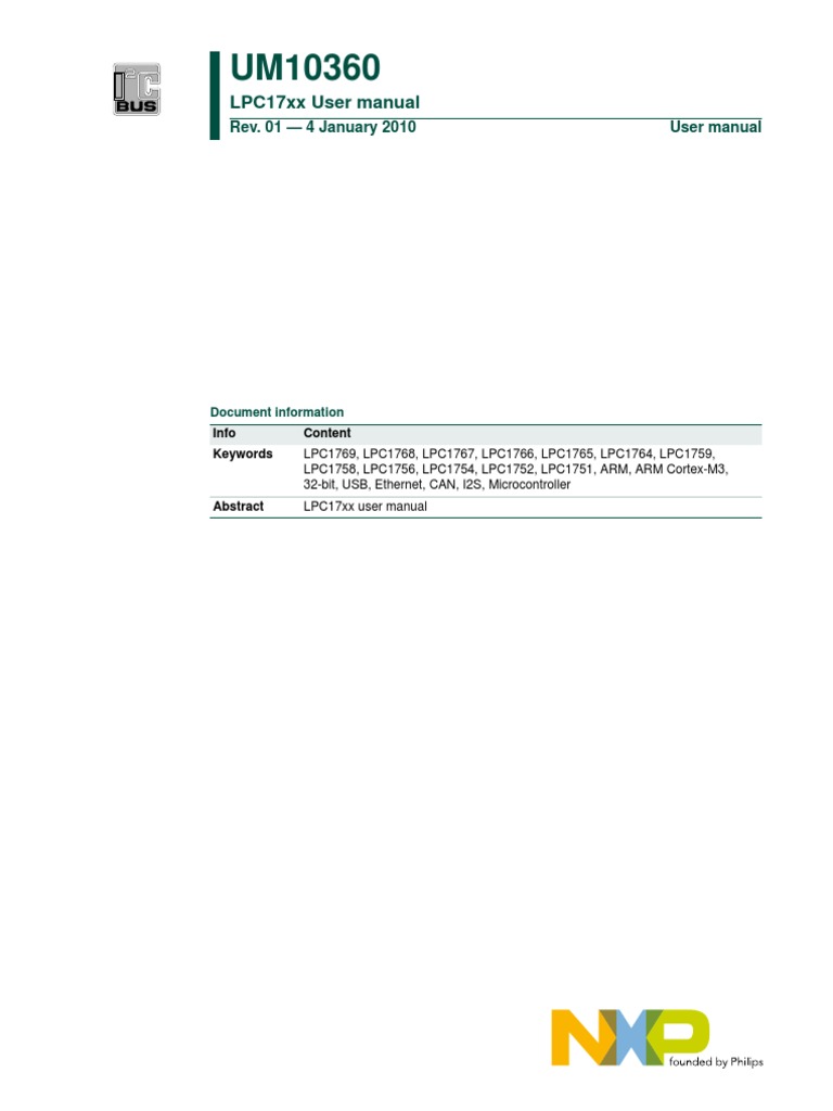 • LPC1758, LPC1767, and LPC1768 have been added to the keywords list on the front cover,