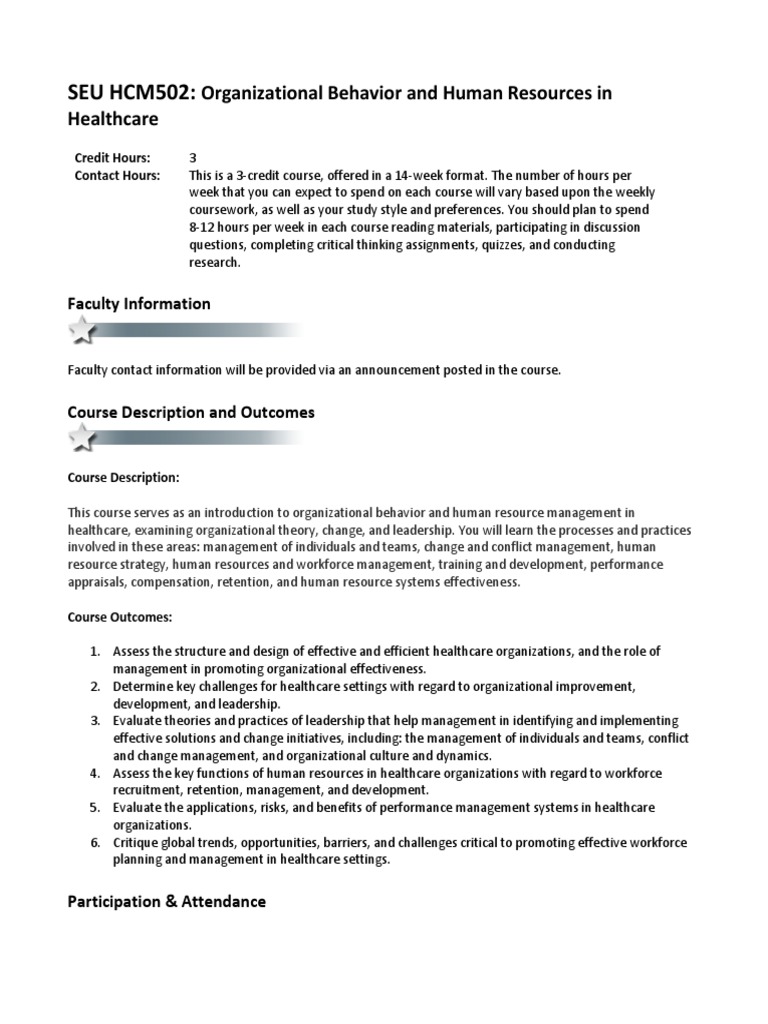 ● Chapter 1 in Organizational Behavior in Health Care ● Discussion (10 points)