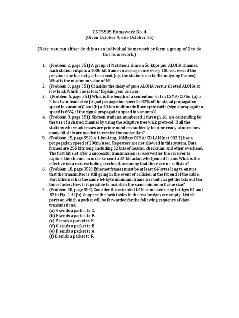 1. (Problem 2, page 351) A group of N stations share a 56-kbps pur ALOHA channel.