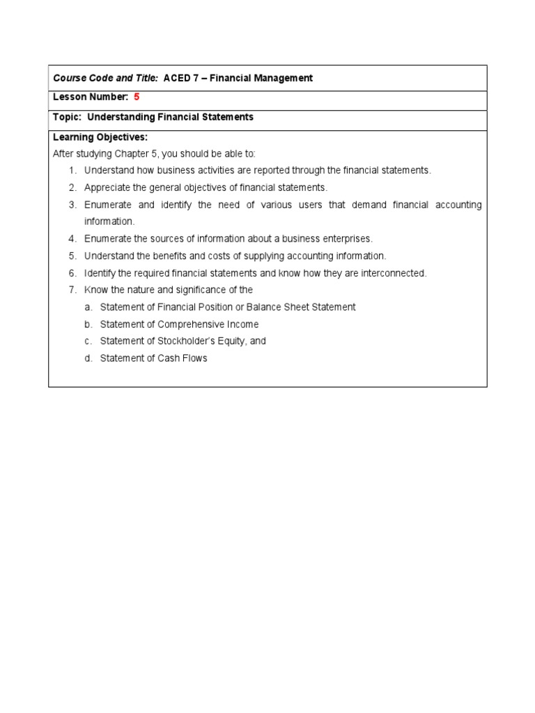 7. Statement 1: The statement of financial position and statement of comprehensive