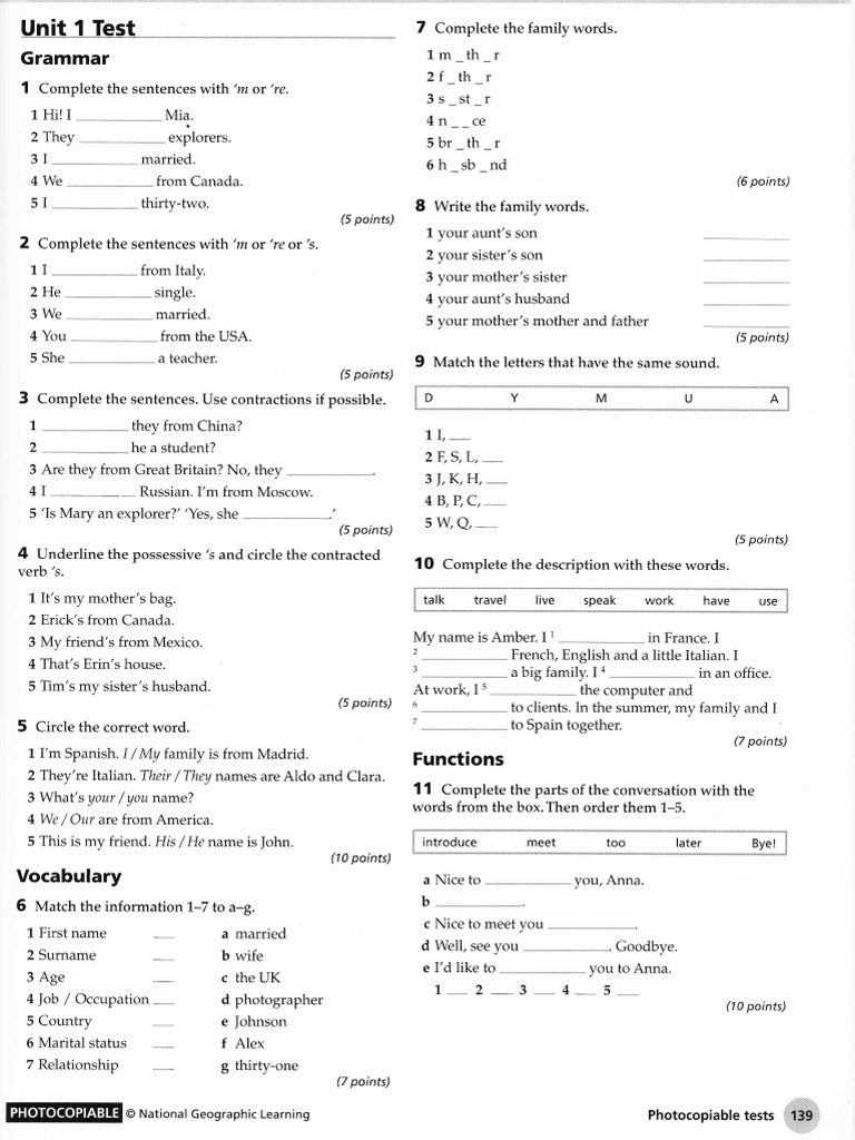 Grammar and Vocabulary Unit Test